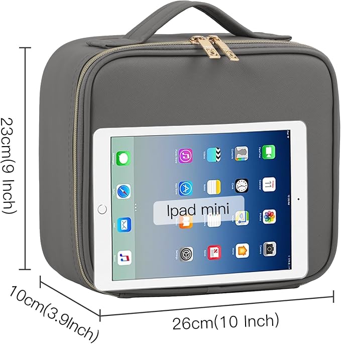 Portable Makeup Organizer, 10 Inch Makeup Organizer Bag with Compartment and Dividers, Makeup Bag with Brush Storage Sturdy Dual Zip Closure, Gift for Her, Grey