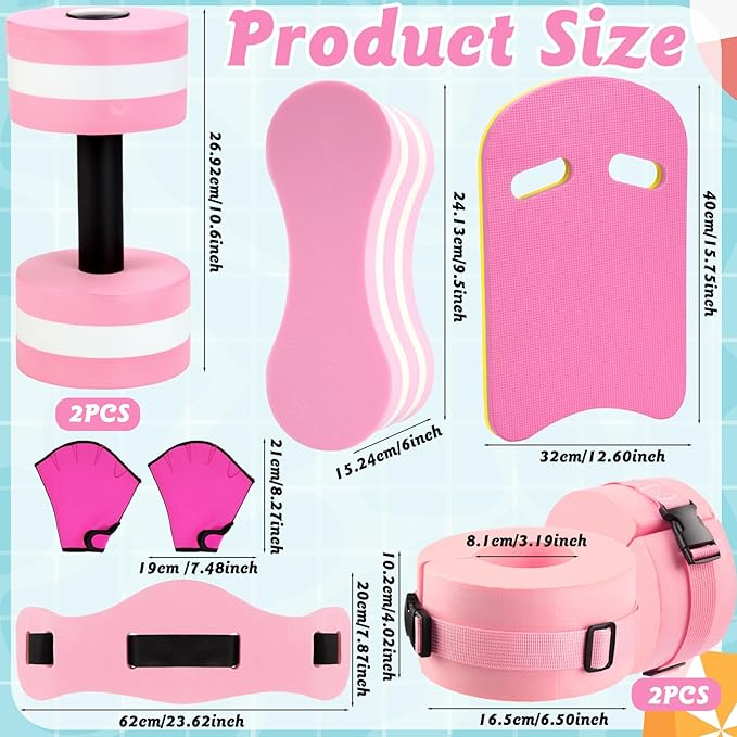 - Comprehensive Full Body Workout: the aquatic exercise set includes 2 cuffs, 2 water sports dumbbells, 1 swim strap, 1 swim float, 1 pull buoy, and 2 exercise gloves for a complete aquatic workout; Improve your overall health through a comprehensive workout that targets your upper body, lower back, and more