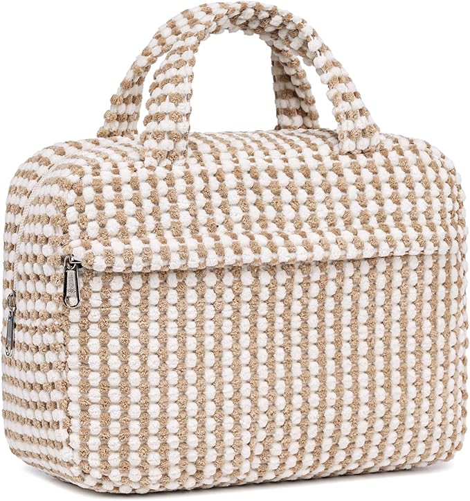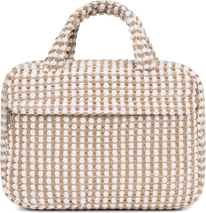 - 【Perfect size & Portable 】L*W*H:9.8*3.55*7 (inch) .Large size and lightweight design, make this cosmetic bag hold all your makeup items,like make-up base, powder, lipsticks, etc. And the makeup bags for women is easy and flexible to pack in your suitcase.