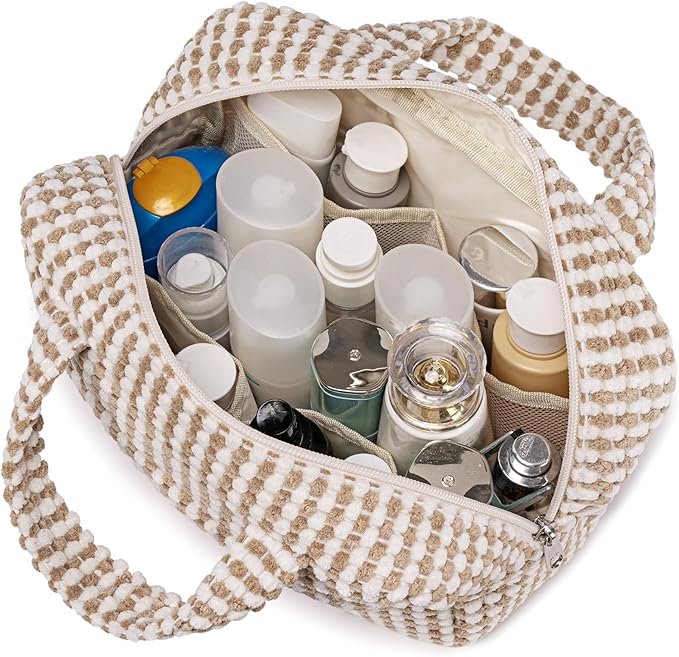- 【Multi-purpose 】Carry handle design, it can be used as makeup organizer bag, travel toiletry bag for women,pouch bags, purse, and can be shopping bag, beach bag, storage bag, daily necessities bags etc.