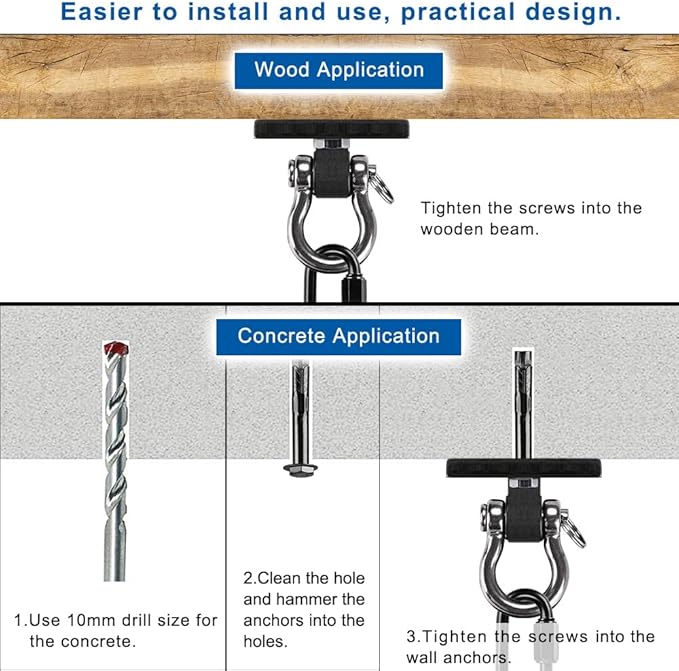 - EASY INSTALLATION: Comes with all necessary hardware for quick, secure mounting on ceilings or I-beams, ideal for home gyms and fitness studios