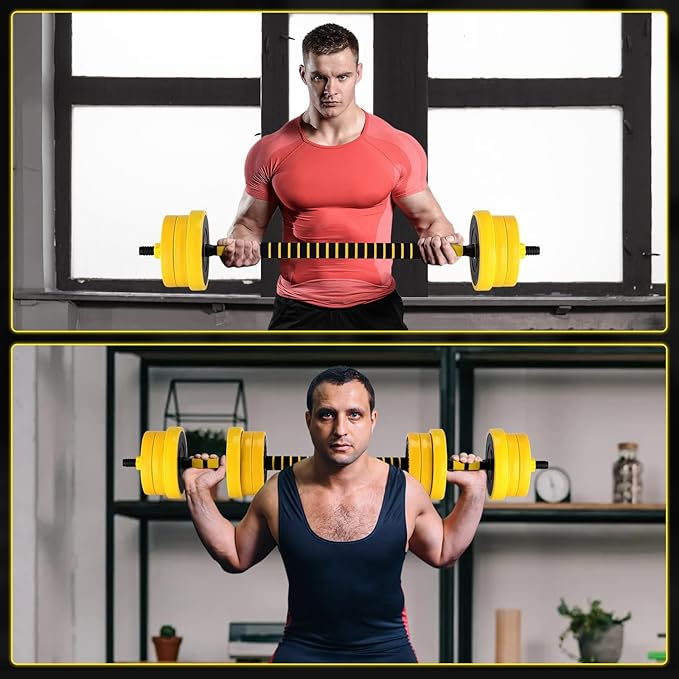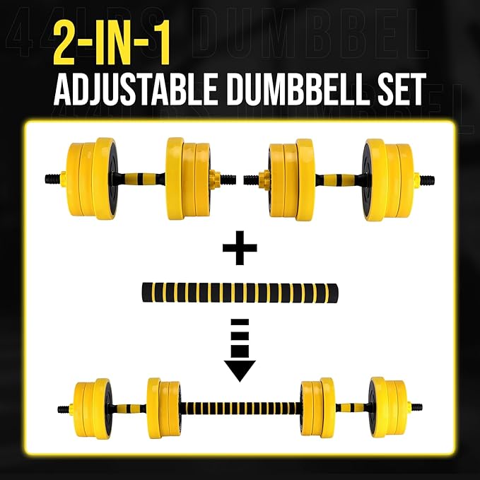 2-In-1 Adjustable Dumbbell Set, Dumbbell and Barbell Set, Yellow