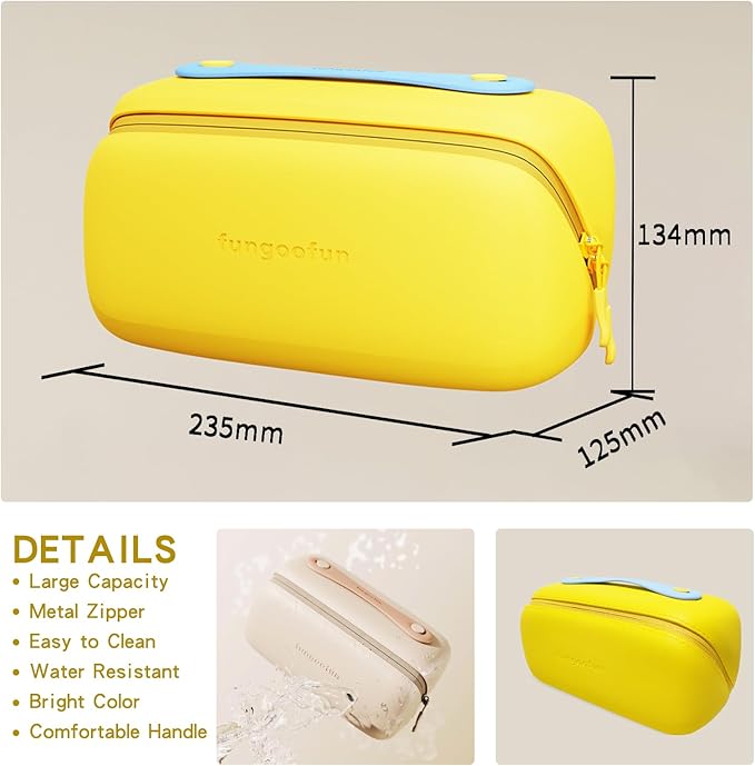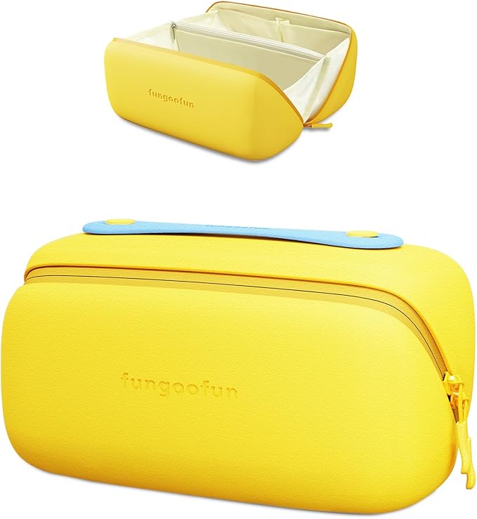 Travel Makeup Bag, Large Capacity Waterproof Cosmetic Bag for Women, Portable Pouch Open Flat Toiletry Bag Make up Organizer with Divider and Handle,Yellow