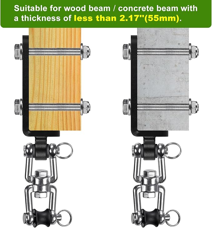 - Save Space Design: Our heavy bag hanging kit is compact design ensures minimal space usage, ideal for home gyms, garages or rooms. You can hang boxing bags, speed bags, aerial yoga, swings, swivel seats, Hanging chair, porch swing, boxing bag or any other swings used for playground swings.