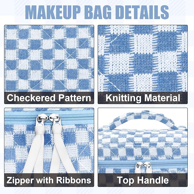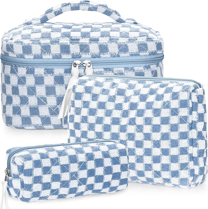• 【3 VERSATILE SIZES】The checkered makeup bag set contains three different sizes of bags.10 * 6 * 6 inches, 10 * 3 * 7 inches, 7.5 * 2.3 * 3 inches. The spacious makeup organizer bag can hold all your cosmetics, make up tools, toiletries, or travel essentials