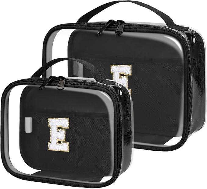 Wandering Nature Clear Makeup Bags 2 Pack Personalized Initial Makeup Pouch Preppy Small Cosmetic Pouch Organizer Travel Toiletry Bag, Birthday Gifts for Girlfriend Women
