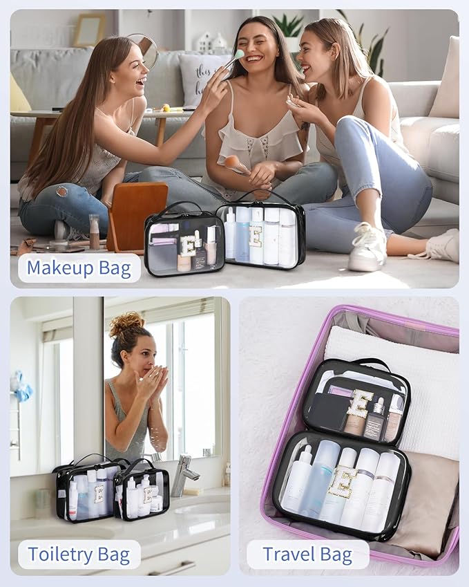 - 【TSA Certified, Liquid Compliant】The medium clear cosmetic bag measures 7.9x 2.4 x 5.8 inches and complies with TSA's published 3-1-1 Liquid Rule. You can quickly pass through airport security. NOTE: The Large Clear Cosmetic Bag measures 9.8 x 3.2 x 6.6 inches, is larger than one quart and is not TSA approved