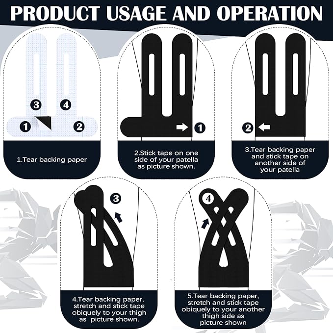 - Precut Knee Support Tape: our waterproof kinesiology tape for knees are typically thin and flexible, providing comfort during exercise without restricting movement: with a zoned peel-off design, the tapes fit perfectly around the knee, allowing you to focus on your workout