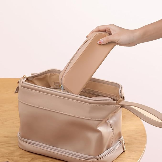 - The sturdy zipper closure ensures that your brush remains securely stored inside the makeup bag, even when you're on the move. The silicone material's compact size and lightweight nature make it easy to carry in your backpack, purse, ensuring that you always have your essentials within reach