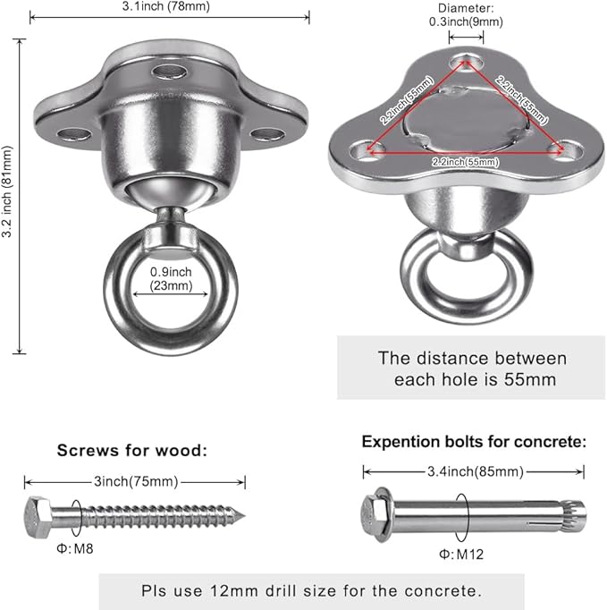 - 【High-Quality Stainless Steel】The punching bag hanger is made of 304 stainless steel, this hanger is rust and corrosion-resistant, ensuring durability even in harsh weather conditions. Suitable for both indoor and outdoor use.