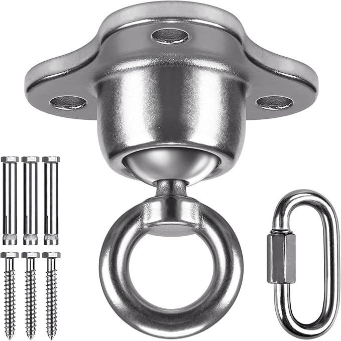 SELEWARE Punching Bag Hanger, Stainless Steel Heavy Bag Hanger with Carabiner, Heavy Duty 360° Rotation Wall Ceiling Mount Hook for Boxing Bags, Hammocks, Gym Swings, Yoga Swings, 1000LB Capacity