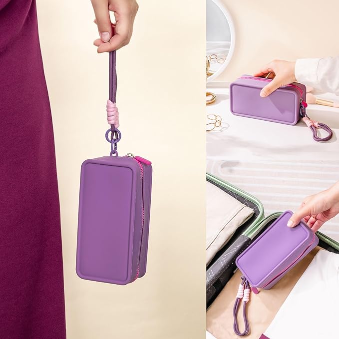 - 【High-quality Silicone Material & Safe Protection】: This travel makeup pouch is made of high-quality silicone material, which is known for its extraordinary softness, long-lasting durability and waterproof performance. This cosmetic bags for women can effectively buffer potential damage to items such as collisions and scratches, and play a role in protecting items inside and outside the handbag.
