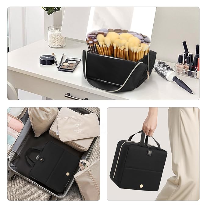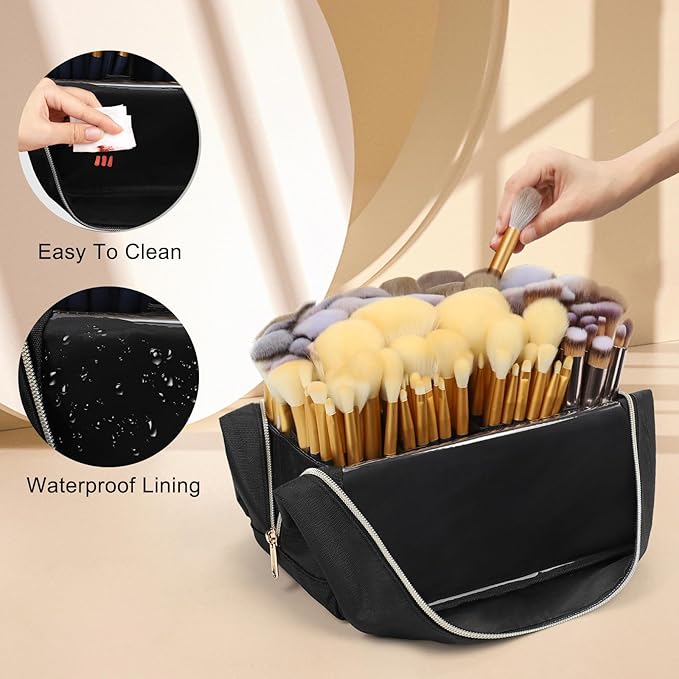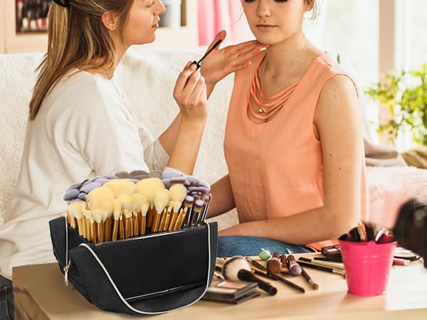 - Portable Design: The makeup brush bag is lightweight and compact, large opening design for easy access to items, portable handle is suitable for travel and home use. It is very convenient for makeup artist to organize and store different sizes brush tools, keep them tidy.