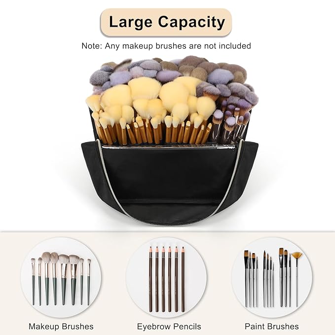 - Large Capacity: Size 9.45inch x 5.5inch x 9.25inch, the makeup brushes bag can accommodate many different sizes of makeup brushes, the length of makeup brushes should not exceed 9.2inch. It can not only store makeup brushes, but also cosmetics, electronic products, small items, etc.