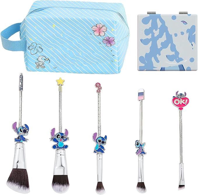 - Gift Set: 1PCS Stitch Travel Cosmetic Bag, 1PCS Cosmetic Mirror, 5PCS Makeup Brushes, which will meet your multiple needs.