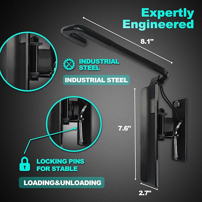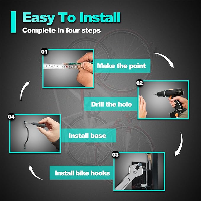 - [Sturdy and Durable] Bike storage hooks are made of thick solid steel with industrial-grade black powder coating for corrosion and rust resistance. Assembled with high quality welding process, the metal structure is durable and has no fragile plastic parts.