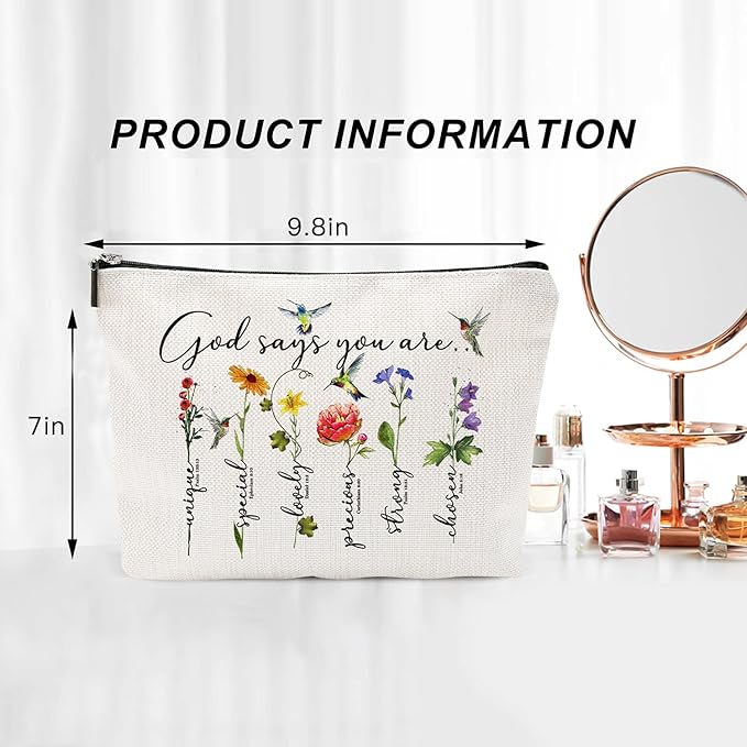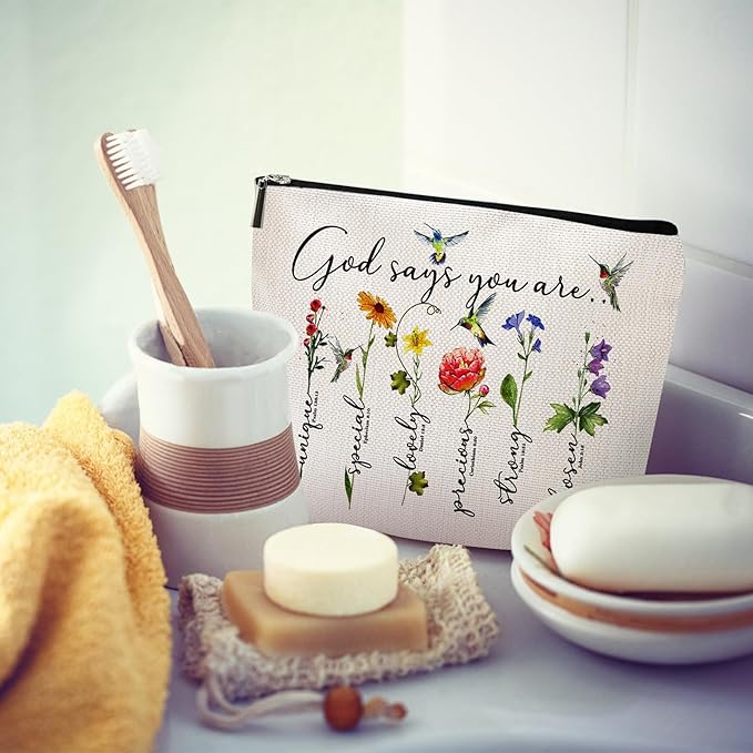 God Says You Are...Christian Gift for Women Inspirational Bible Verse Cosmetic Bags with Zipper Motivational Religious Travel Pouch for Women, Mother, Sister