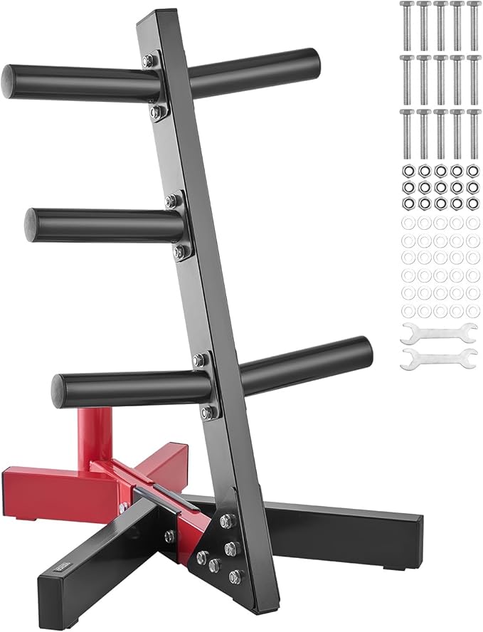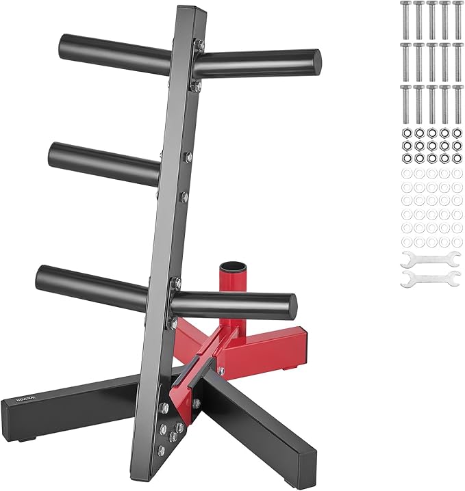 VEVOR Weight Plate Rack, L Frame Weight Plate Tree for 2-Inch Weight Plates, Standard Weight Plate Tree, 500 lbs Load Capacity Weight Storage Holder, Home Gym Barbell Rack Storage Stand, Black & Red