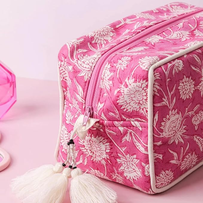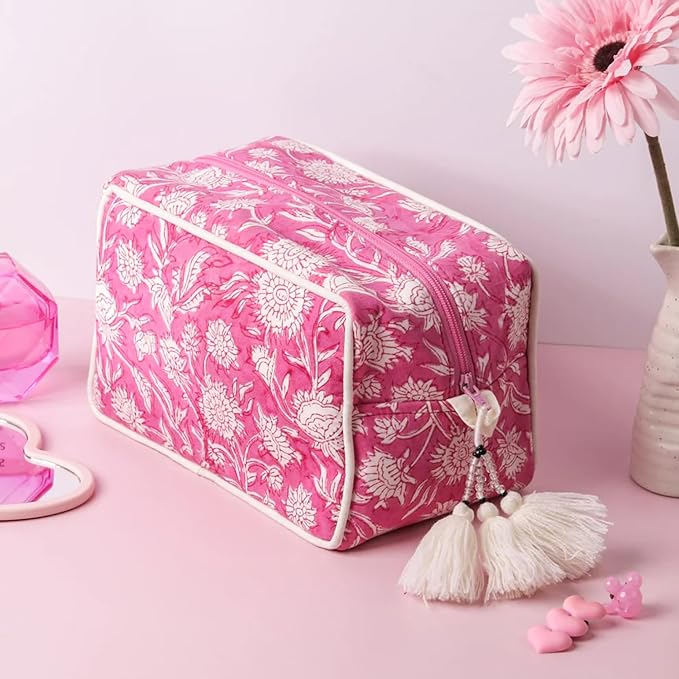 - Traditional Portable Design: Crafted from traditional block printed cotton fabric and featuring a water resistant lining, the pouch is designed to keep your essentials safe and dry. You use it as a travel pouch, utility pouch, makeup bag, toiletries bag or travel cosmetic bag, its study design ensures it meets every requirement.