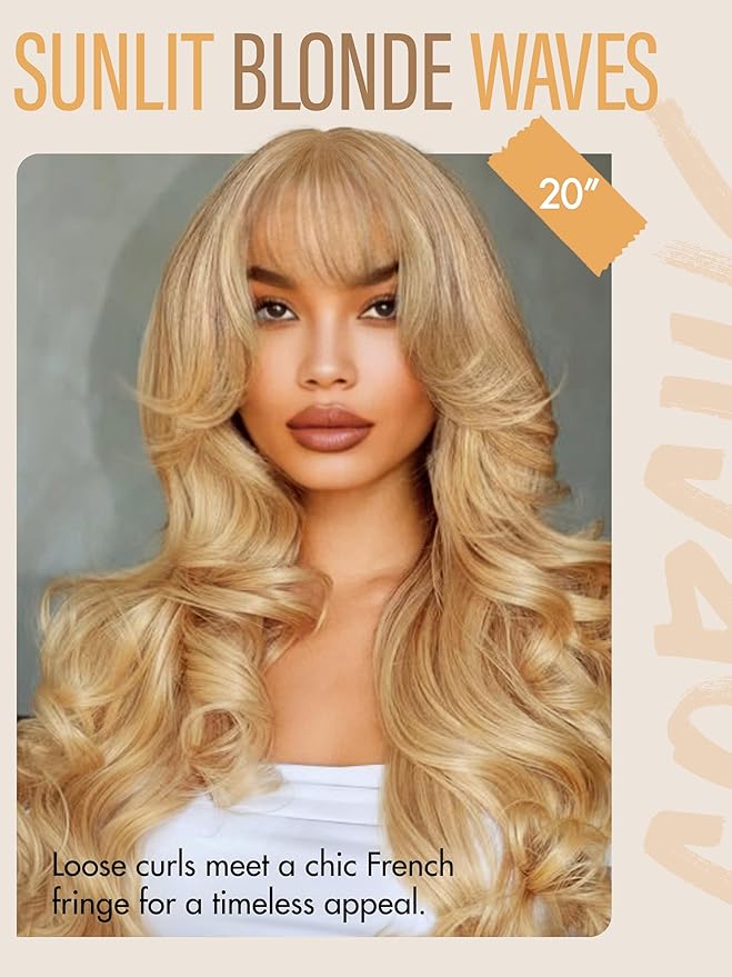 - Glueless & Beginner-Friendly – No glue, no lace, no hassle! This wavy wig with curtain bangs is easy to install and perfect for beginners. Just put it on and go!