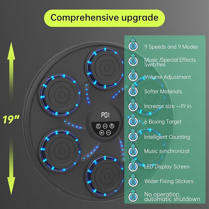 - 【 Comprehensive Upgrade 】: Music boxing machine offers up to 9 speeds and 9 modes, with added special effects switches ,volume adjustment,and Softer materials.The intelligent counting function of the boxing machine can record every hit, better helping users evaluate their own growth.