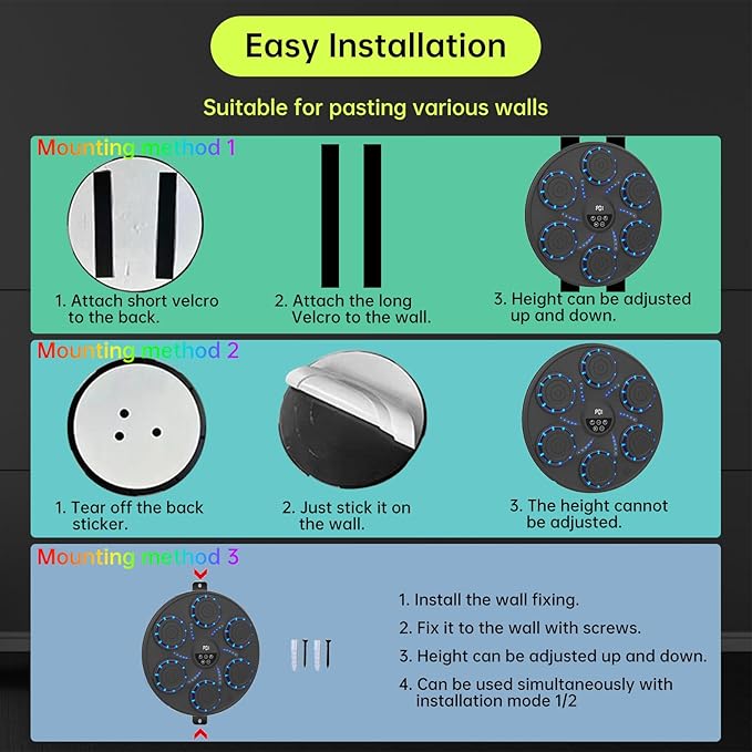 - 【MUSIC+Bluetooth】 Smart music boxing equipment comes with upgraded speakers and surround sound, supports Bluetooth pairing. Cool light effects and special effects sound flashes following the rhythm of your music, making your boxing training more fun and exciting.