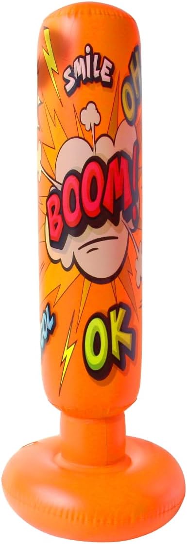 - [Promote Growth] The simple actions of hitting, kicking and punching this inflatable sandbag help children develop balance, strength and coordination. Your children can use the kicking sandbag to relieve tension and cultivate self-confidence while playing