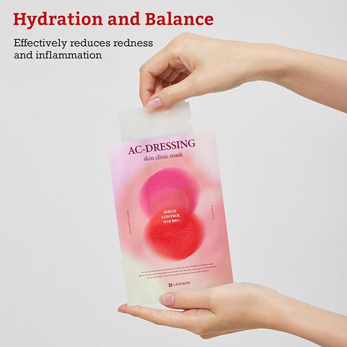 LEADERS AC-Dressing Skin Clinic Mask – Soothing and Calming Sheet Mask for Sensitive, Acne-Prone Skin – Helps Reduce Redness & Irritation, Hydrates, and Balances Skin, Sebum Care Mask – 10 Sheets
