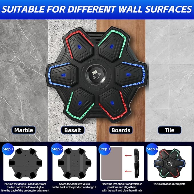 - Professional Music Boxing Board: The music boxing machine is equipped with multiple modes and speeds to meet the needs of most people. When the target lights up and you hit it with your fist, you will get a count. Improve your reaction speed and body coordination. Suitable for professional boxers, fitness enthusiasts, weight loss enthusiasts, children, teenagers, office workers, etc.