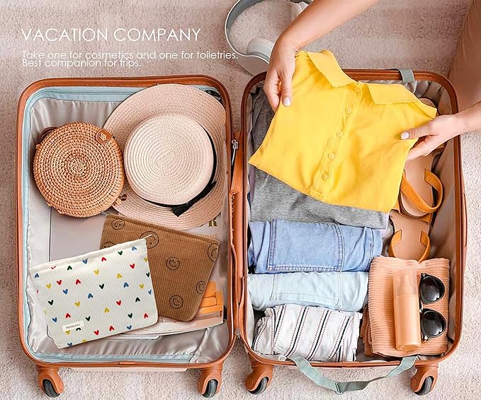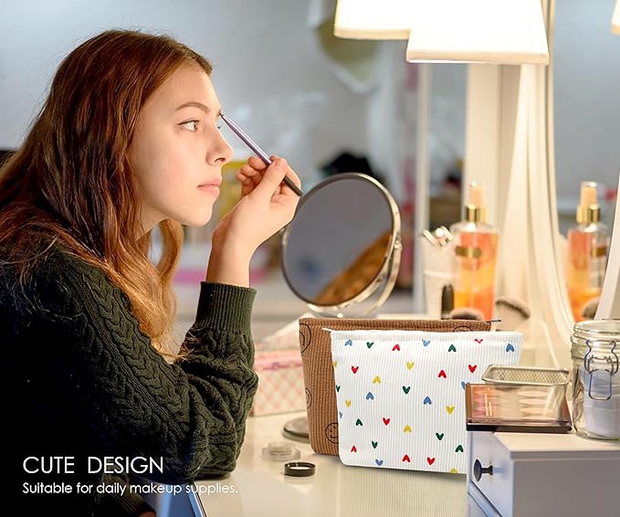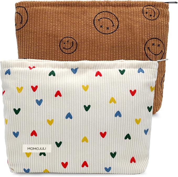 Corduroy Makeup Bag Cosmestic Bag Large Capacity Ladies Women Aesthetic Make Up Organizer Accessories Zipper Pouch Purse Beige Heart+Brown