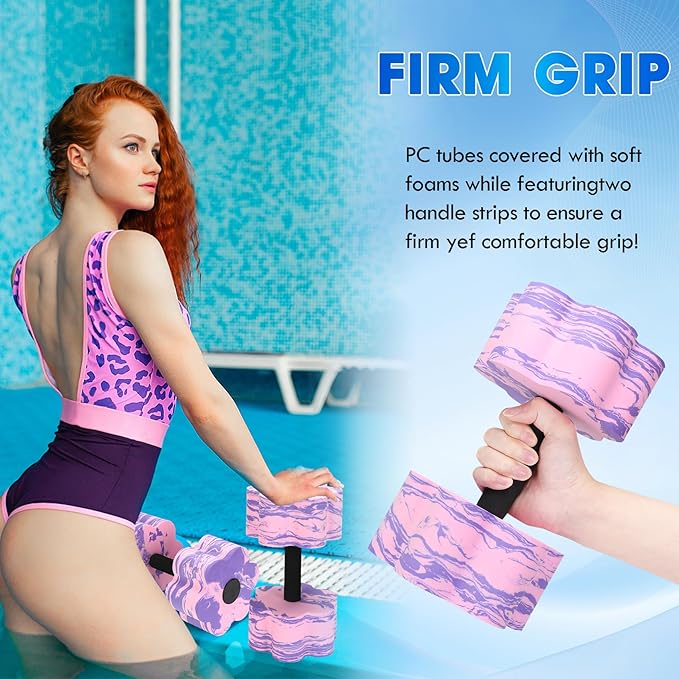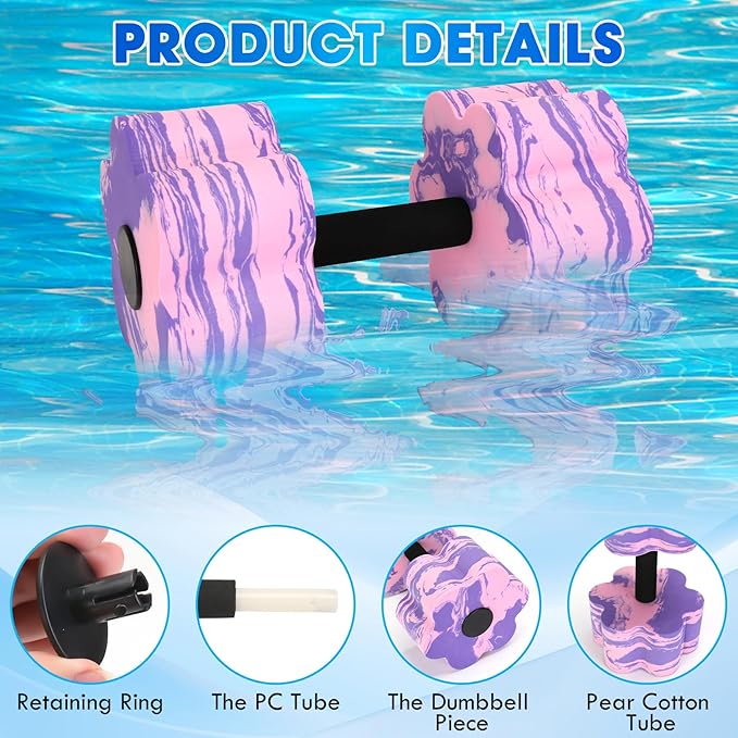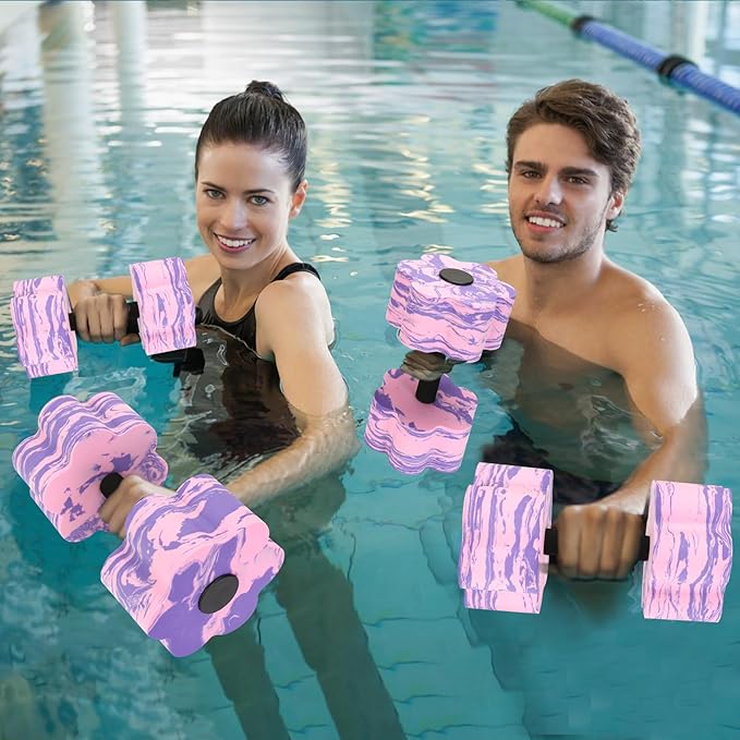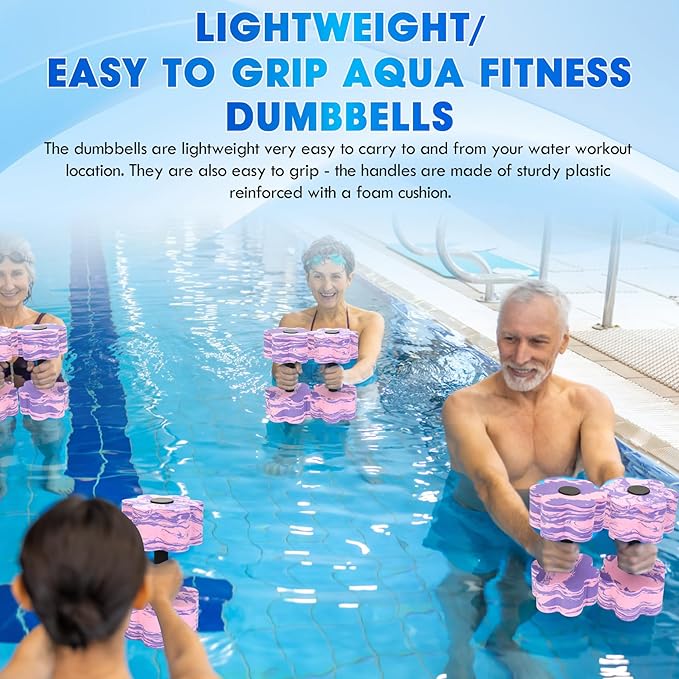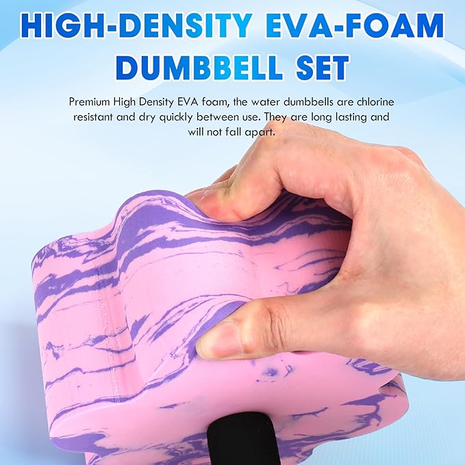 - 🤽♀️ High-Density EVA-Foam Dumbbell Set-Made of premium High Density EVA foam, the water dumbbells are chlorine resistant and dry quickly between use. They are long lasting and will not fall apart.