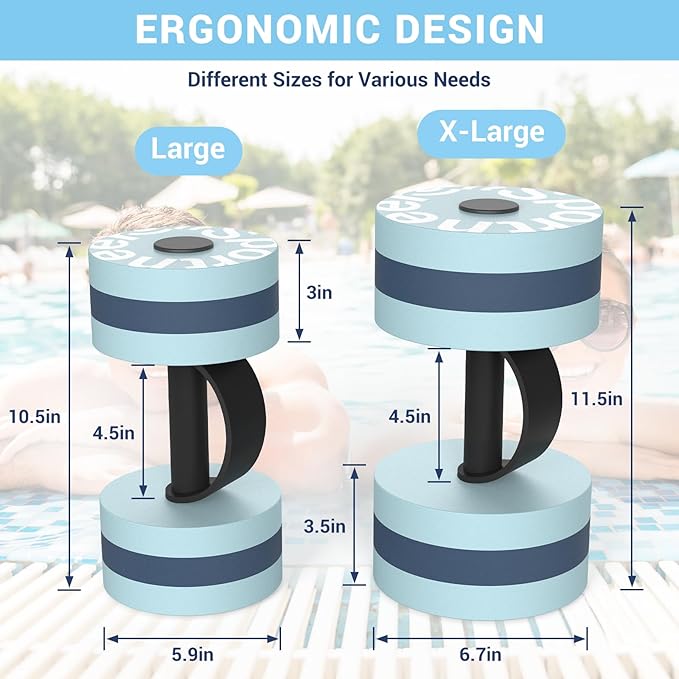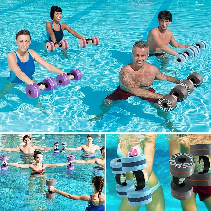 Sportneer Water Weights Aquatic Exercise Dumbbells Water Dumbbell Aerobics Workouts Set of 2 EVA Foam Pool Weights Dumbbells Set Aqua Fitness Barbells Equipment for Water Aerobics Weight Loss