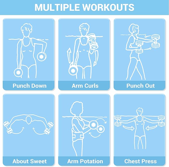 - 38 Times High-Density Material: Compared with other water dumbbells on the market, the Sportneer water weight made of high-quality, 38 times high-density EVA foam materials are durable, safe, environmentally friendly, waterproof, odorless, and quick-drying