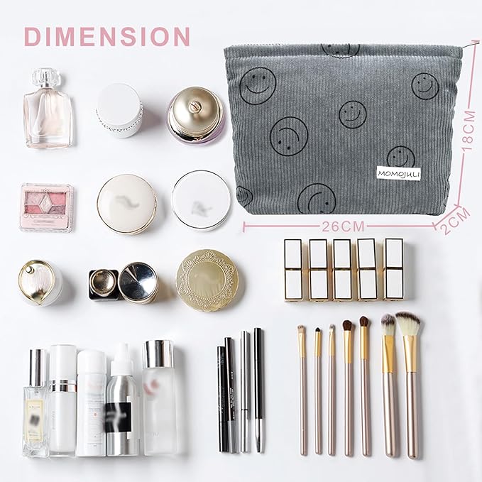 Corduroy Makeup Bag Cosmestic Bag Large Capacity Ladies Women Aesthetic Make Up Organizer Accessories Zipper Pouch Purse Grey