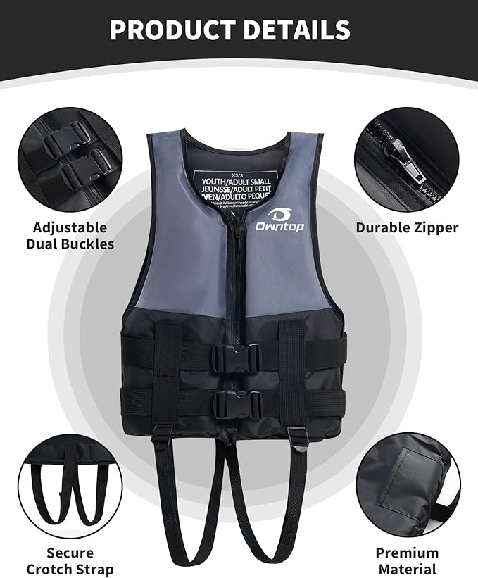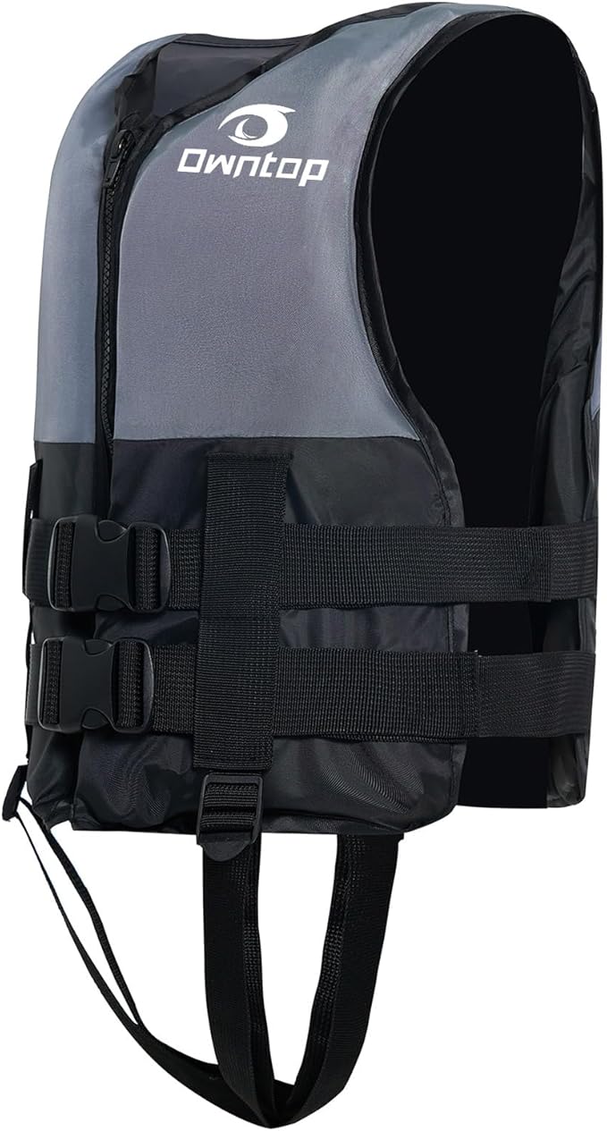 Owntop Kids and Adult Swim Jackets 50 to 125 lbs Dual Buckles, Zipper and Crotch Strap Ski Vest Lightweight PFD Perfect for Kayaking, Fishing, Paddle Board