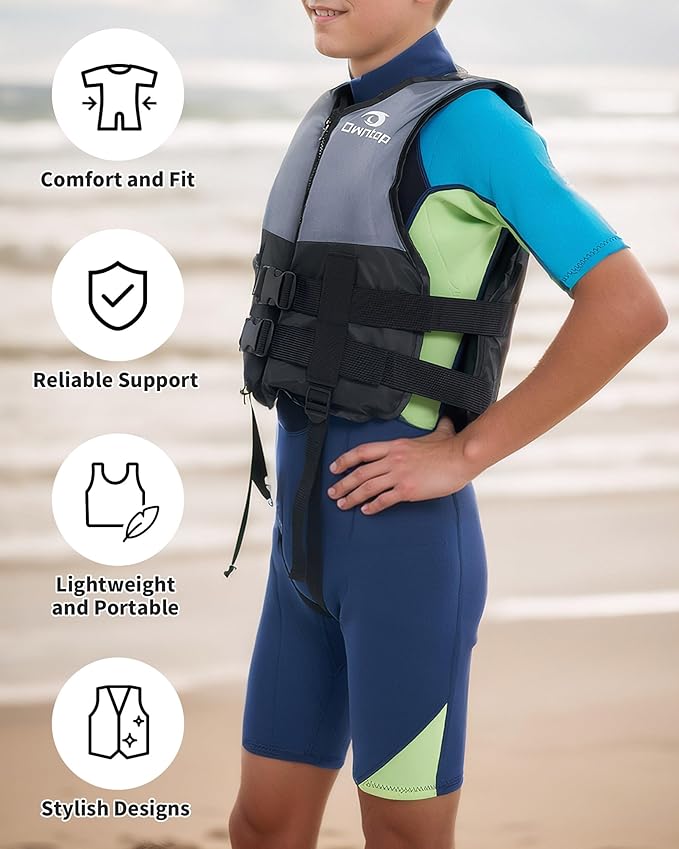 - Versatile & Ideal for All Ages: Comfortable for Youth & Adults Designed for both children (6-12 years) and adults up to 125lbs; ideal for a variety of water activities including boating, fishing, and swimming; ensures comfort and safety for all ages, ensuring a secure experience for families