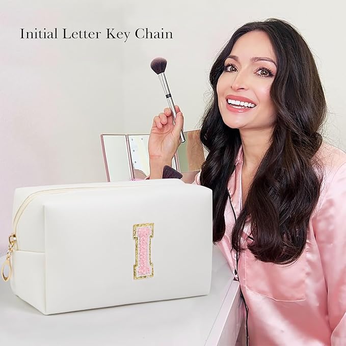 - 【HIGH QUALITY MATERIAL】: The cosmetic bag is made of high quality PU leather, which is not only waterproof and scratch-resistant, but also durable. You can travel with your cosmetics or toiletries in this bag without worrying about damage to your items. The monogrammed metal keychain pull ensures that your belongings are kept safe and organized inside the bag. This makeup bag is also easy to clean and can be easily wiped clean with a damp cloth.