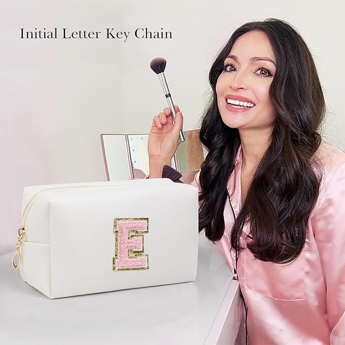 - 【HIGH QUALITY MATERIAL】: The cosmetic bag is made of high quality PU leather, which is not only waterproof and scratch-resistant, but also durable. You can travel with your cosmetics or toiletries in this bag without worrying about damage to your items. The monogrammed metal keychain pull ensures that your belongings are kept safe and organized inside the bag. This makeup bag is also easy to clean and can be easily wiped clean with a damp cloth.