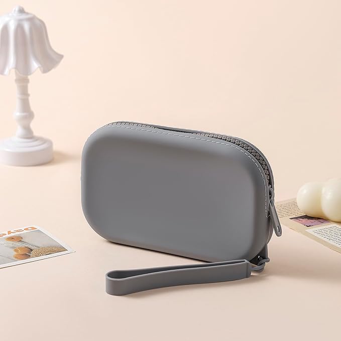 Portable Silicone Makeup Bag for Women, Small Travel Waterproof Toiletry Cosmetic Bag, Zipper Closure Organizer Makeup Case with Handle (Dark Grey)