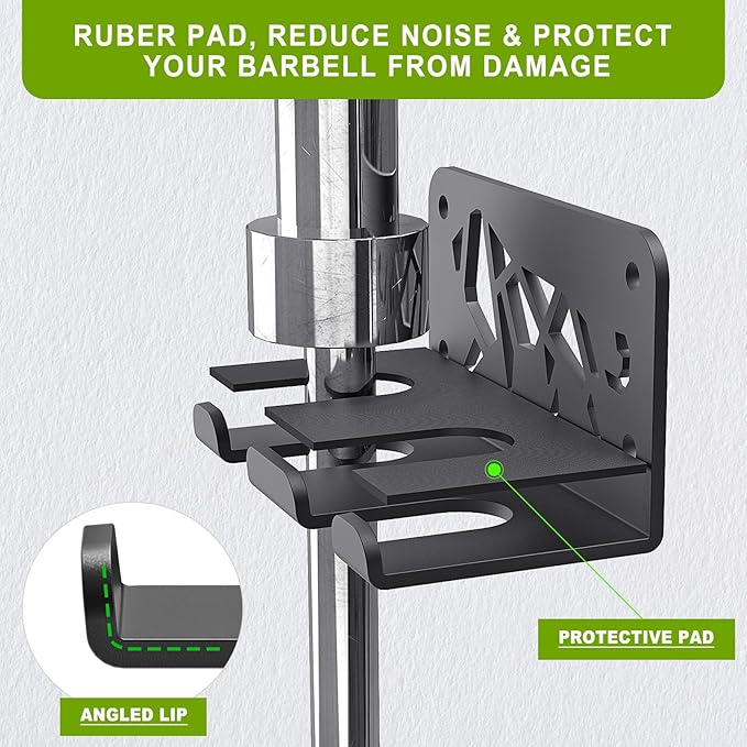 - 【Protective Features】All hooks are properly spaced to avoid overlapping, protecting your equipment and rack from scratches. Rubber protective pads have been added to the hooks to reduce noise and protect your barbell from scratches