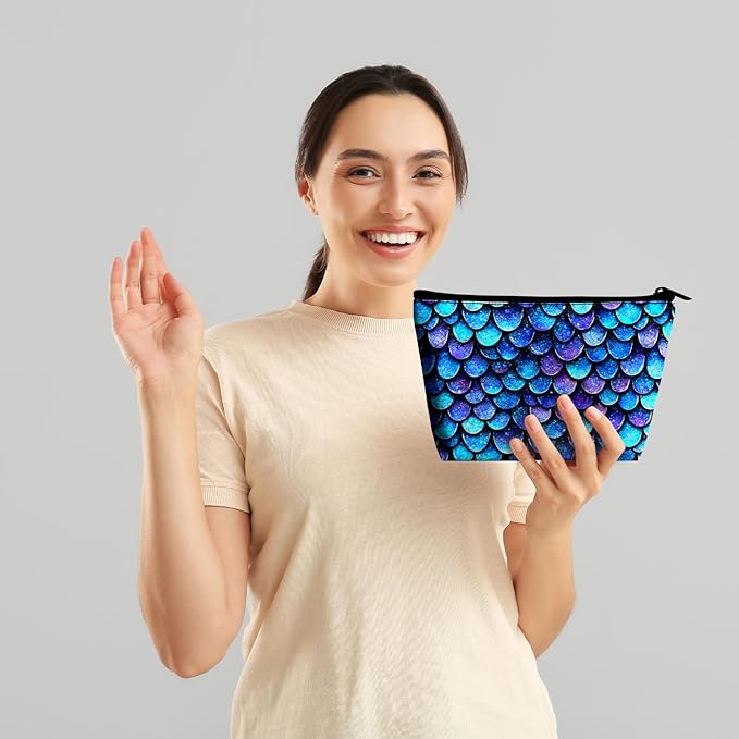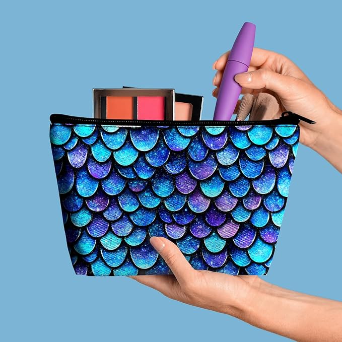 Mermaid Scales Travel Bag Makeup Bags for Women Teens Girls Cosmetic Pouch Big Capacity Cosmetic Bags for Purse