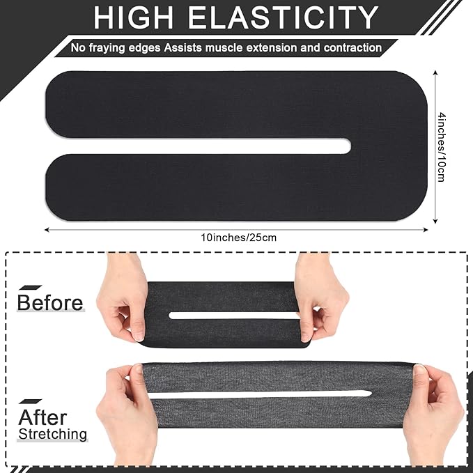 - Pre-Cut Design: specially designed for the knee, our kinesiology tapes are thin and flexible, about 10 x 4 inches/ 25 x 10 cm; These tape precut strips save time and the use of zone peeling design allows the tape to exactly fit your knees