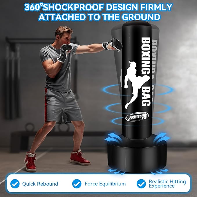 - Freestanding Punching Bag for Adults: The mma punching bag is 69'' tall, perfect for teens and adults. Thickened PVC material make the boxing punching bag more durable. It's a good choice for you to train with boxing equipment at-home.