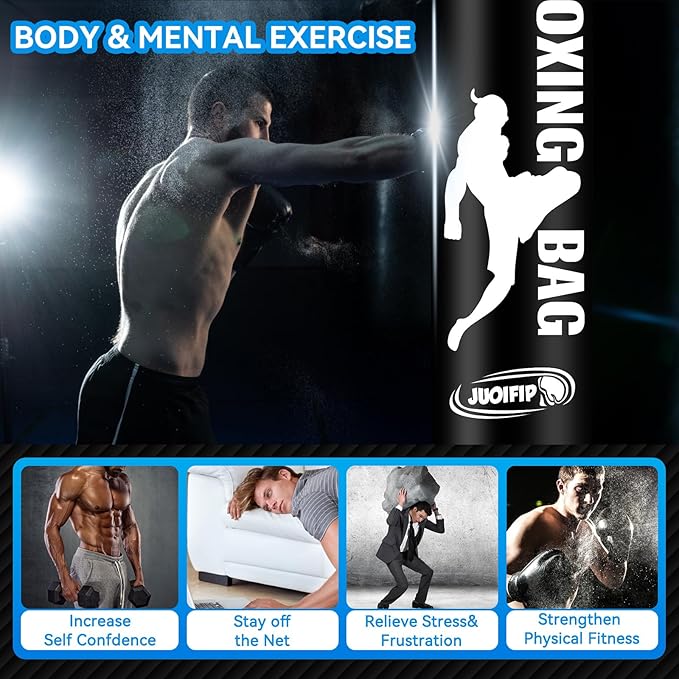- Ideal Standing Heavy Bag: This free standing punching bag for adults are the good gift for yourself, family, friends, colleagues. Kickboxing bag is good for body building, pressure release, get rid of Internet addiction and training Taekwondo, Boxing, Karate, Muay Thai Fitness. Great to maintain a positive mood and keep a health body.