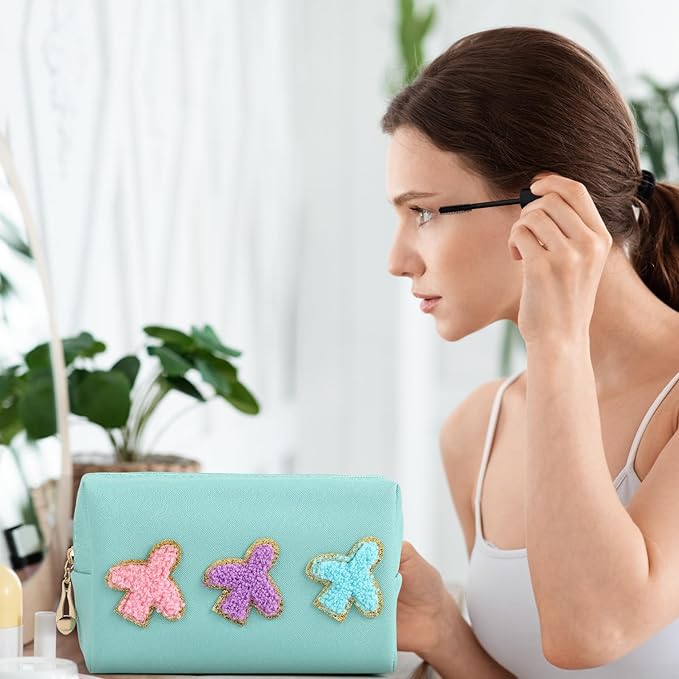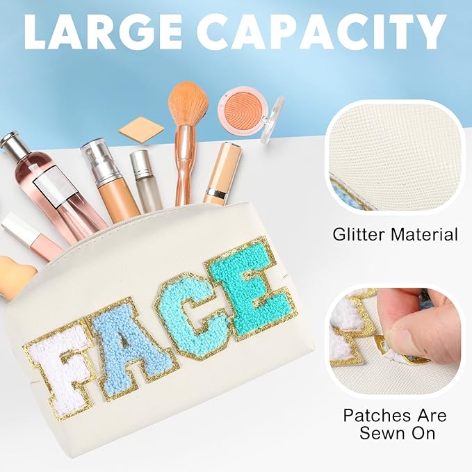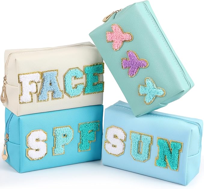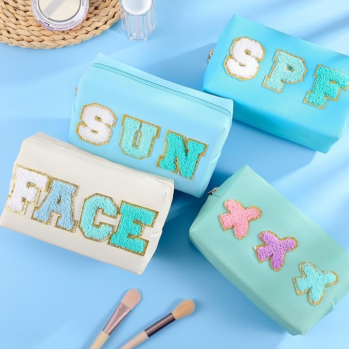 - Glitter Chenille Letter and Pattern Design: preppy purses have gold glitter letter patches, letters and patterns made from delicate embroidery and non woven fabrics, these colorful letters with gold glitter borders make your travel makeup bags look more attractive and delicate, showing your personality and drawing attention to others
