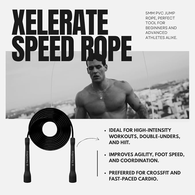 - SwissSkip Xelarate rope is heavy enough to get nice feedback as a beginner and light enough to get the crispy footwork as an advanced jumper.