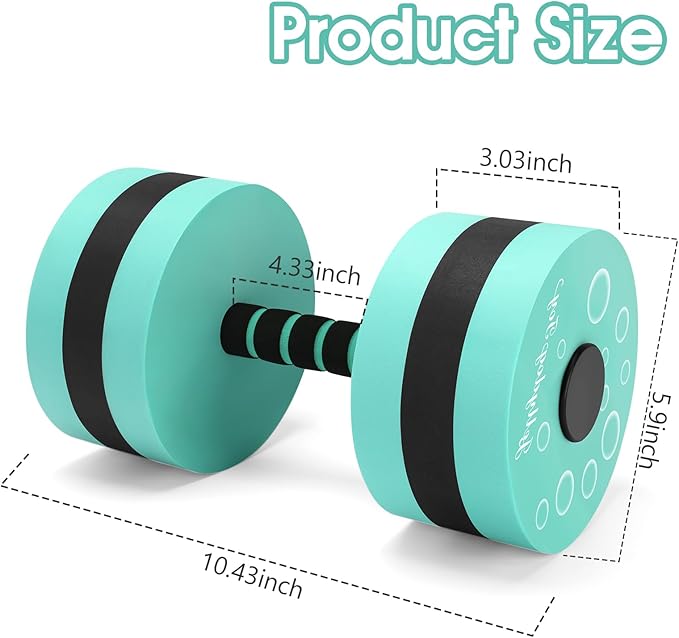 - Lightweight/Easy to Grip Water Ring Aqua Fitness Dumbbells - The dumbbells arecustom designed with water rings and our logo, makes it looks more special and charming, lightweight very easy to carry to and from your water workout location. They are also easy to grip - the handles are made of sturdy plastic reinforced with a foam cushion. Dimensions:10.8"L x 5.8"W.