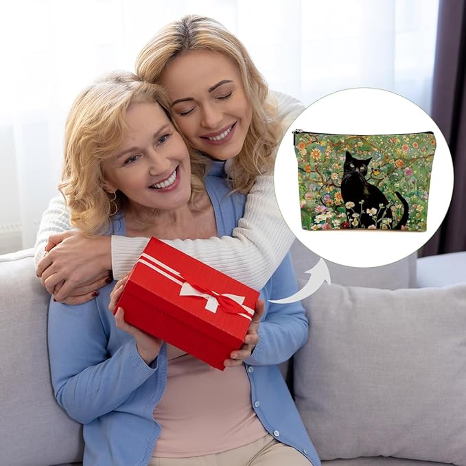 Floral Cat Makeup Bag Cat Gifts Cosmetic Bag Cat Lover Gifts for Women Girls Friend Daughter Cat Themed Gifts Cat Stuff Travel Organizer Zipper Pouch Graduation Birthday Friendship Gifts