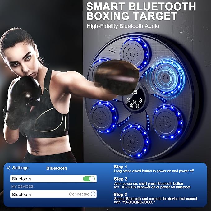 - 【Bluetooth Punching Machine】Enhance your workout experience with the built-in Bluetooth feature of this boxing training equipment. Easily connect your smartphone or device to play your favorite music or motivational tracks while you train. The immersive sound system keeps you energized and motivated throughout your session. Whether you're boxing to the beat or following a guided workout, the Bluetooth functionality adds a fun and interactive element to your fitness routine