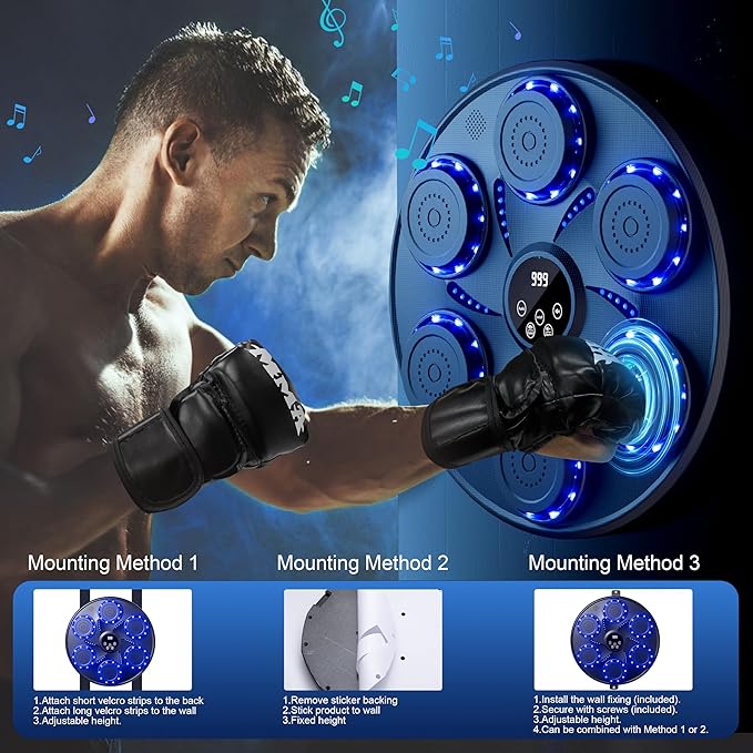 - 【Easy Wall-Mounted Installation】This musical boxing machine is designed for quick, space-saving wall mounting. Use the included double-sided tape and Velcro straps to fix the wall boxing punching pad on various surfaces like wood, brick, or tile. For added stability, wall fasteners and screws are also provided for optional drilled installation. The height is fully adjustable to suit users of all ages and preferences, making it perfect for any home gym